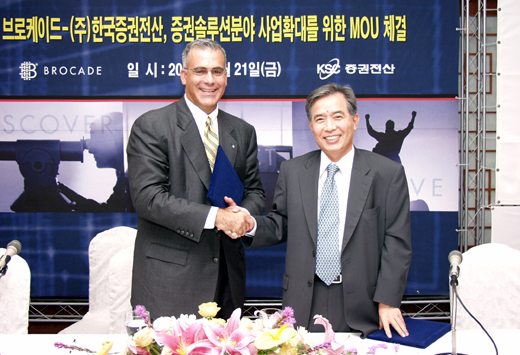 The world SAN(Storage Area Network) infrastructure provider Brocade Communication System signed a strategic agreement with KOSCOM choosing SAN as the standard platform for domestic securities firms.