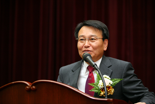 CEO Kim Kwang Hyun is giving his speech in commemoration of the 32nd anniversary of the company on Friday. |