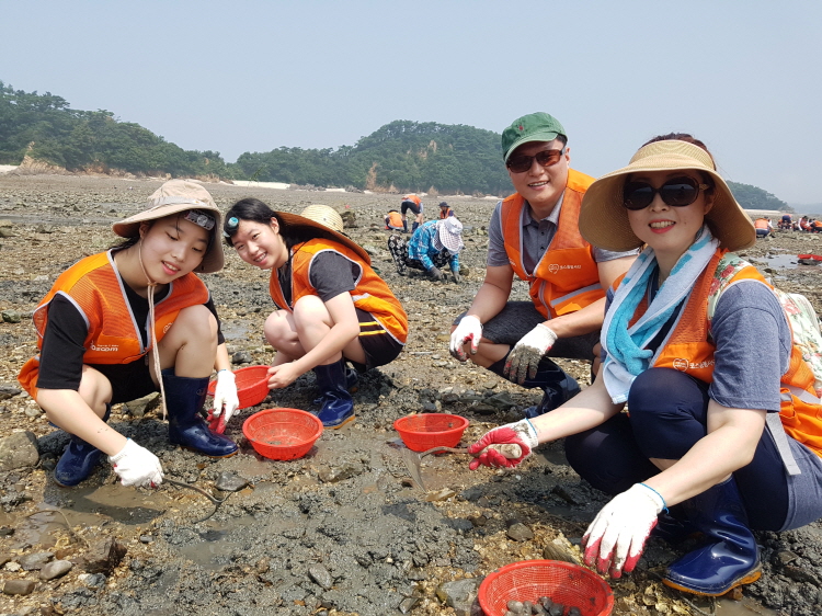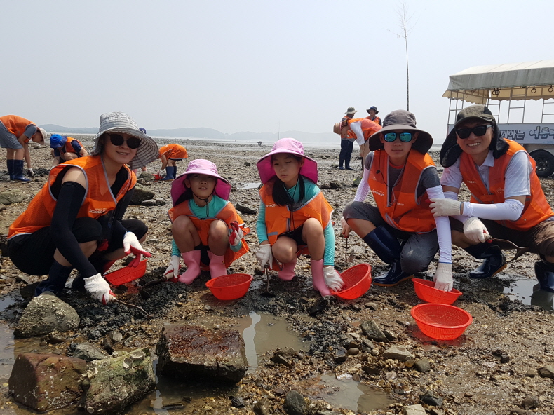임직원 가족이 환경정화 활동을 다녀왔습니다. □ 봉사활동 후에 바지락과 소라게도 잡는 등 가족들과 즐거운 시간을 가졌습니다.